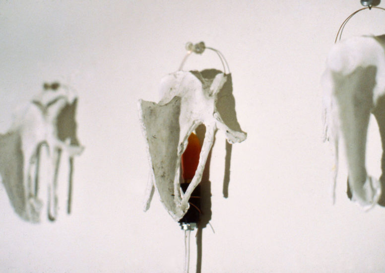 History Turkey Breastbone Sconces, 1985, plaster, wire and light, 5" x 3" x 2 1/2" each. Previous:Dog ClockNext:Tape Drawing